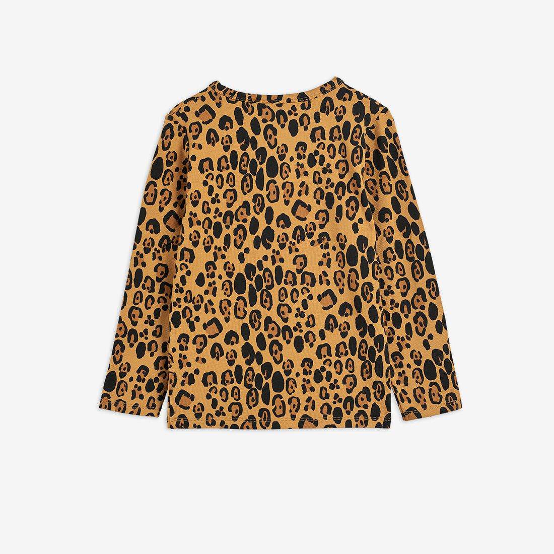 Långärmad farfarströja i lyocell med ett heltäckande leopardprint, ett pandamärke i nederkant fram och tryckknappar på bröstet.