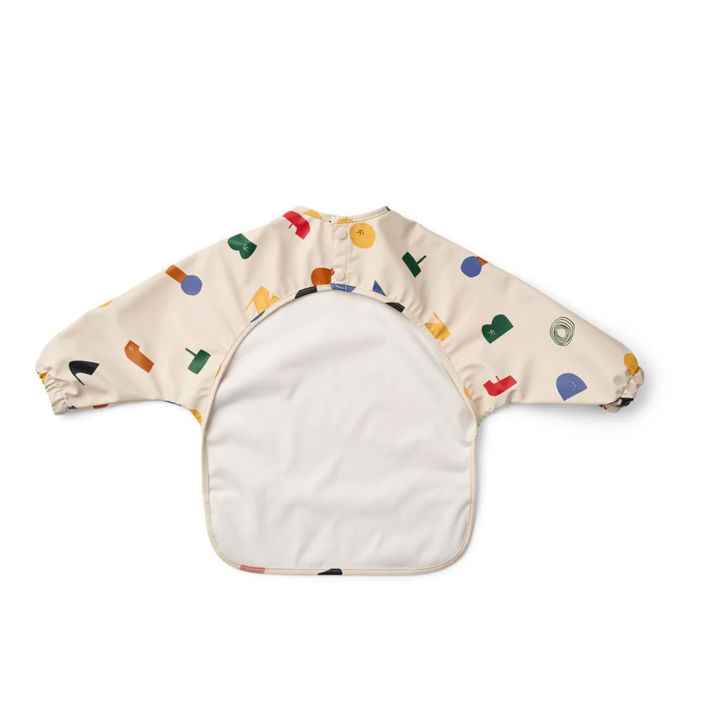 HAKLAPP MED LÅNGÄRM FÖR BARN Lätt cape haklapp för barn som lär sig äta. Det återvunna materialet gör det omedelbart återanvändbart: bara skölj och torka rent.