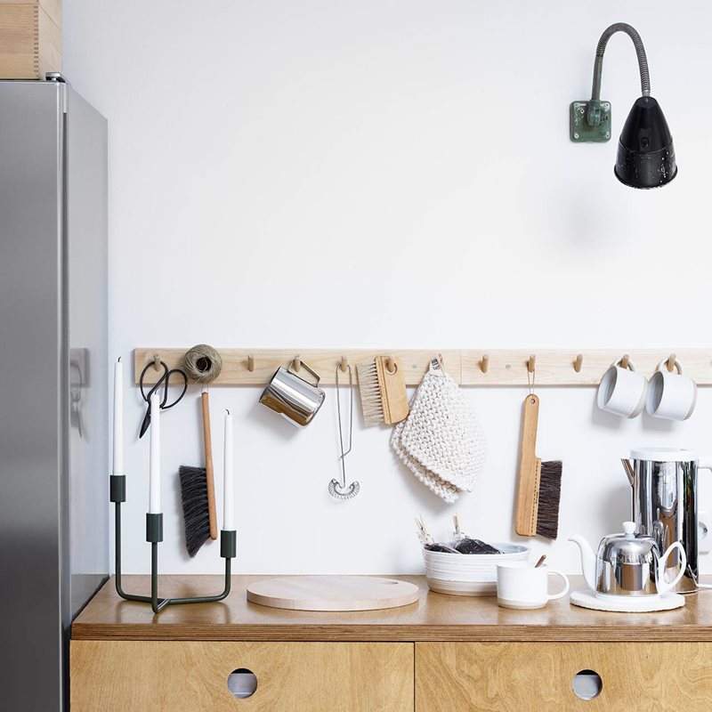 Knopphängare i obehandlad björk med 7 knoppar. Passar i kök, hall och badrum. Avståndet mellan knopparna är det samma som avståndet som blir mellan knopparna när flera knoppbrädor sätts samman vilket gör att den kan byggas på till önskad längd. Fungerar även tillsammans med 2193-00 och 2194-00.