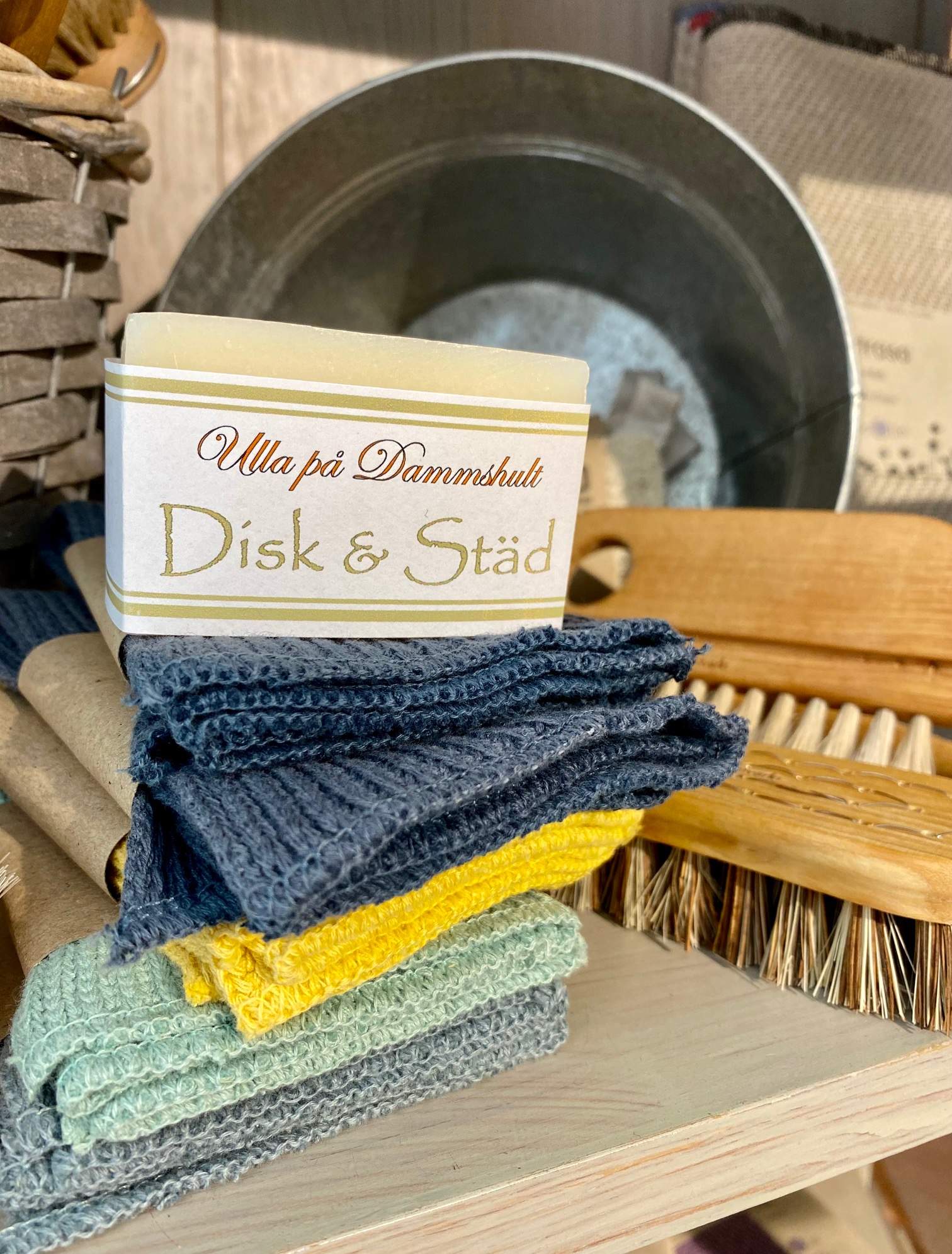 Disk- och städtvålen innehåller endast kokosolja och eterisk Olja Citrongräs.