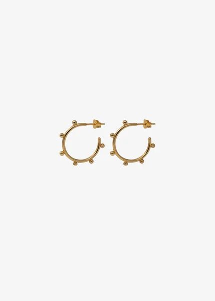 Runda härliga örhängen med små ploppar tillverkade i Sterling Silver 925 med en plätering av 18k guld. Alla smycken är handtillverkade på vår lilla smyckesfabrik som ligger i Bangkok och drivs av kvinnor.