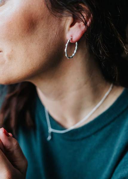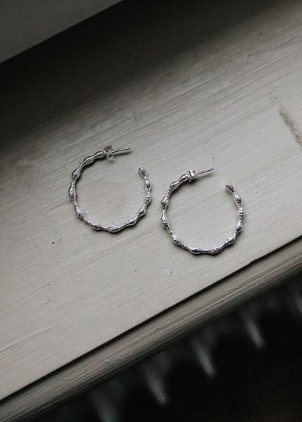 Tång – Formen till örhängena har inspirerats av en tångruska vi hittat på Käringön. Örhängena är tillverkade i Sterling Silver 925, till dessa finns både matchande armband, ring och en mindre variant av örhänget. Vår smyckeskollektion är designad på Käringön med inspiration av vår vackra svenska skärgård. Alla smycken är handtillverkade på vår lilla smyckesfabrik i Bangkok som drivs av kvinnor där de arbetar för att främja jämställdhet och sociala rättigheter.