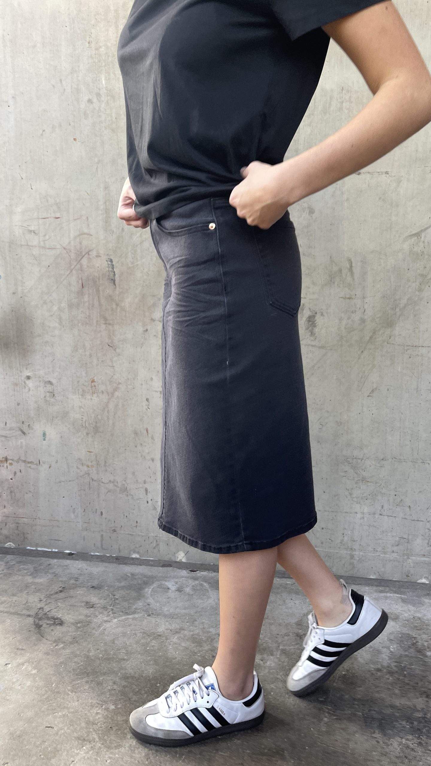 Doris är en stretchig jeanskjol med fickor.
