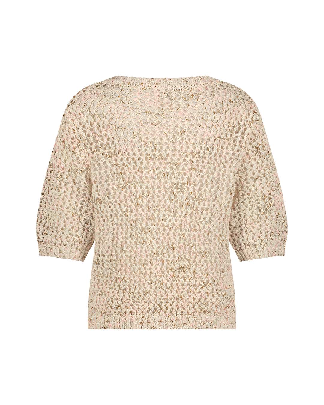 Red Button Jolene – en kortärmad stickad tröja i sandmelerad ton som kombinerar stil och komfort. Med rund hals, armbågslånga ärmar och öppen stickning är den både sval och sofistikerad.
