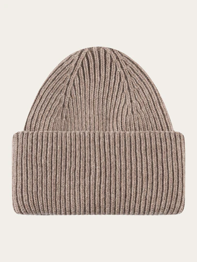KnowledgeCotton Apparel big rib beanie with large turn-up completed with tonal logo-badge. Color:Black Jet