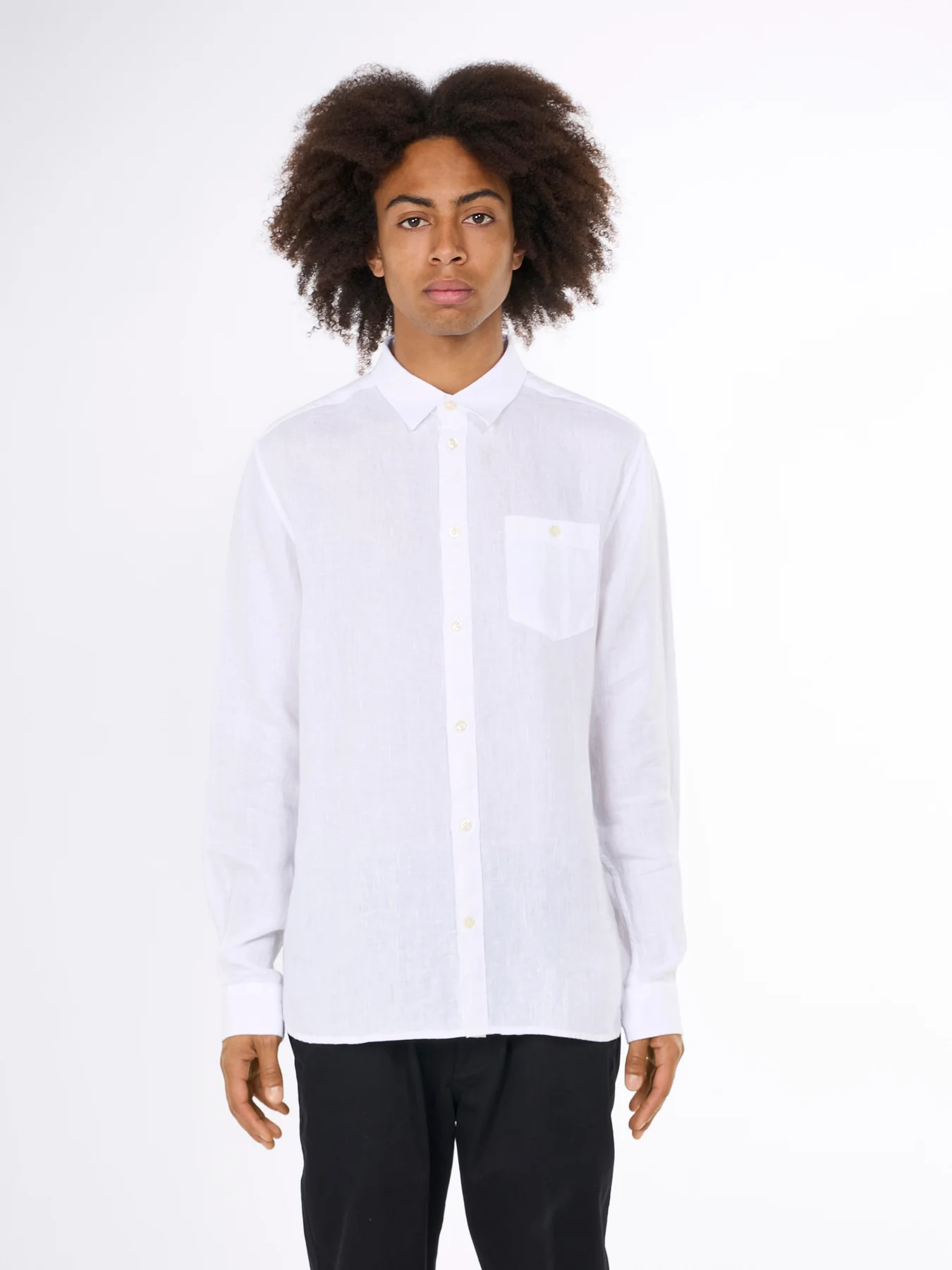 Välj en klassisk och tidlös skjorta som aldrig går ur stil och du kommer att vilja bära den om och om igen. Långärmad skjorta är gjord av 100 % ekologiskt linne. Kvaliteten känns otroligt mjuk, har en naturlig melerad färg och är det perfekta komplementet till en bekväm och medveten garderob. Designad i en skräddarsydd passform med en klassisk krage och med en bröstficka med knappstängning och knappförslutning.