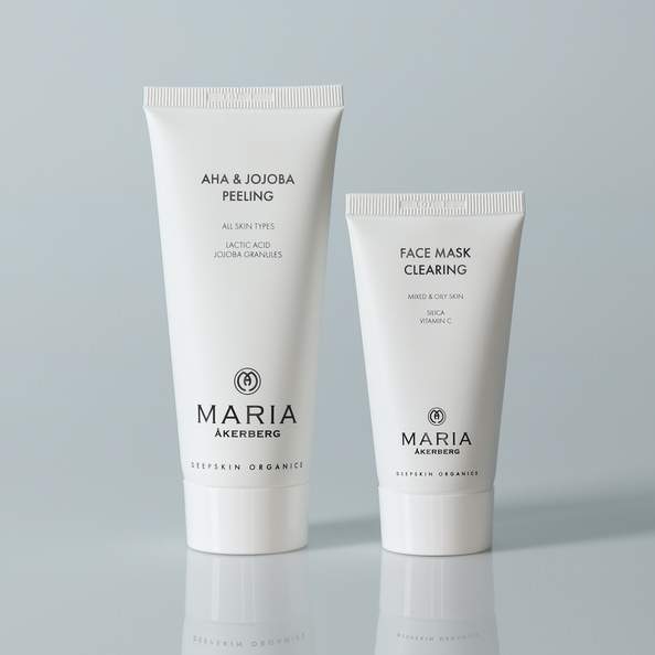 Renande kur: Applicera AHA & Jojoba Peeling och peela. Borsta eventuellt bort kornen och lägg sedan Face Mask Clearing ovanpå. Låt verka över natten och skölj av på morgonen. Alternativt, låt sitta i minst 20 minuter.