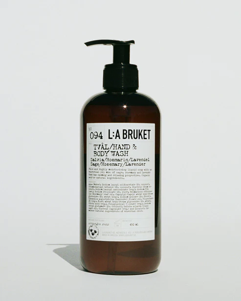 En naturligt rengörande och återfuktande flytande tvål, fuktgivande samtidigt som den låter huden behålla sin naturliga fukt. Den önskade skumeffekten erhålls naturligt genom medel som härrör från kokosnötter, samtliga naturliga/organiska ingredienser som gör tvålen skonsam mot huden. Eteriska oljor från lavendel, rosmarin och salvia ger en avslappnande aromatisk doft.