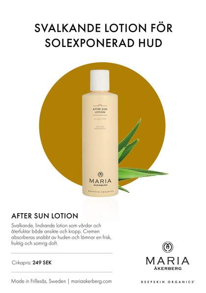 After Sun Lotion är en svalkande, lindrande lotion som vårdar, återfuktar och mjukgör solexponerad hud på både ansikte och kropp. Cremen absorberas snabbt av huden och lämnar en frisk, fruktig och somrig doft.